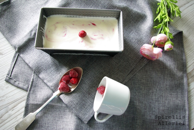 Nur 3 Zutaten und ohne Eismaschine, Elsa, ich-bin-begeistert!!! Himbeeren liebe ich eh total (und reagier zum Glück auch nicht allergisch drauf) *-*
