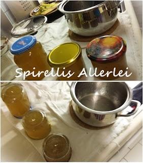 Dann ging alles ganz schnell: Eine Kelle kam wieder und wieder in den Topf – alles verlor sich aus den Augen… um dann schließlich in Gläsern (4 x 250ml) wieder aufzuwachen.