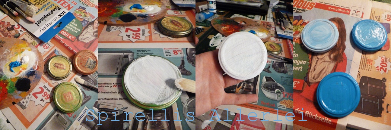 Die Deckel habe ich mit zwei Schichten Acrylfarbe überzogen – welche Farben ihr hier wählt, ist euch überlassen. Die erste Schicht solltet ihr aber gut trocknen lassen.