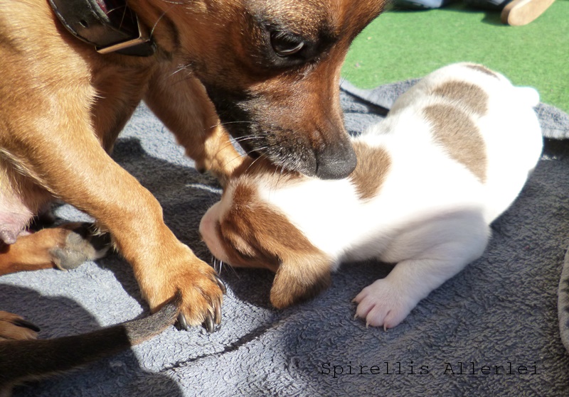 ich hatte euch ja vor kurzem schon mal Bilder vom Nachwuchs unserer Hündin gezeigt (Wer es noch nicht gesehen hat: KLICK). Und weil ihr auch ganz liebe Worte zu den kleinen Süßen da gelassen habt, dachte ich mir, ich widme ihnen mal einen eigenen Post.