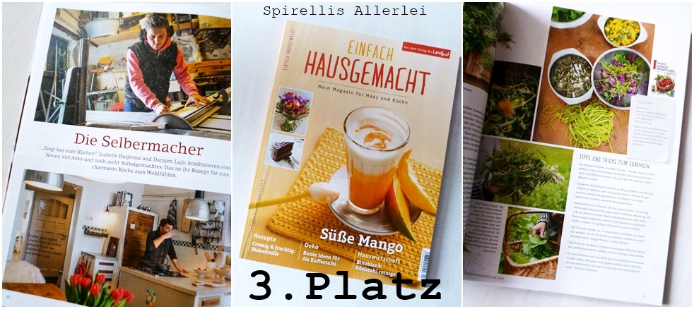 Der dritte Preis ist die aktuelle Ausgabe der „Einfach Hausgemacht“ aus dem LandLust Verlag. Ich selber habe diese Zeitschrift abonniert und kann mich jedes mal wieder neu verlieben – in die tollen Bilder, Rezepte, Dokus und wissenswerten Beiträge.