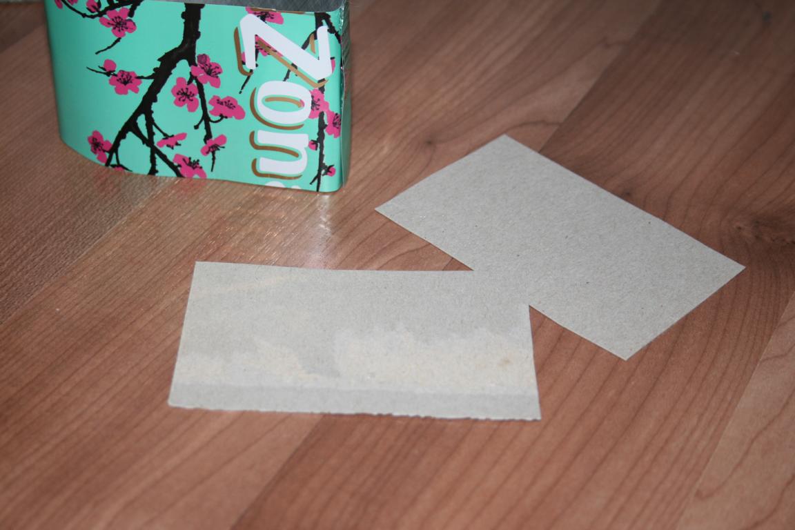 Um alles ein wenig zu stabilisieren, könnt ihr aus Pappe zwei Rechtecke ausschneiden, die ihr in das Oval steckt.